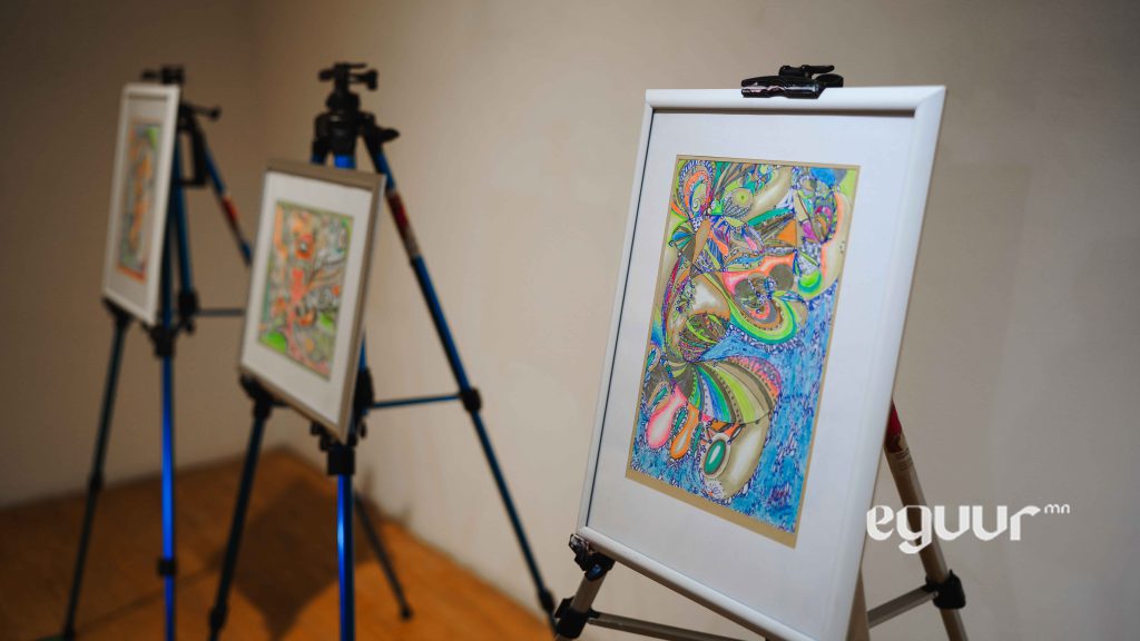 -Чамаас бас нэг өнгө ялгарч байна. Тэнд зогсож байгаа залуугаас бас өнгө ялгарч байгааг би олж хардаг. Би хүний сэтгэлийг маш их хардаг. Тэдгээр хүмүүсийн сэтгэлээр дамжиж бүтээлийн санаа орж ирдэг. Сэтгэлээс гардаг болохоор миний уран бүтээлд ганц зорилго байдаг. Үзэсгэлэнг маань үзсэн хүмүүс жаахан ч гэсэн сэтгэлийн гэгээ, аж жаргалыг мэдрэх.