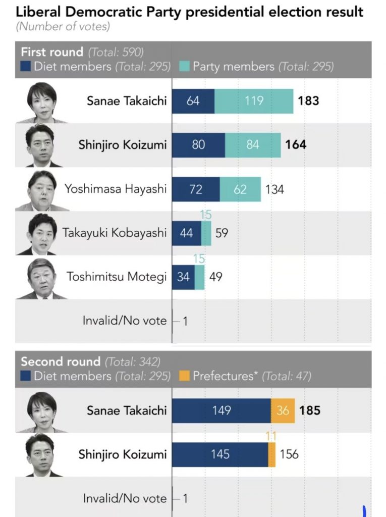 Одоо тэр парламентын санал хураалтад оролцоно. Доод болон Дээд танхим хамтран Японы Ерөнхий сайдыг шийдвэрлэдэг. Эрх баригч эвсэл одоогоор аль ч танхимд олонхгүй байгаа ч сөрөг хүчний намууд нэгдэх эсэх нь тодорхойгүй байна. Хэрэв Такаичи энэ санал хураалтад ялбал Японы анхны эмэгтэй Ерөнхий сайд болж, түүхэнд тэмдэглэгдэн үлдэнэ.