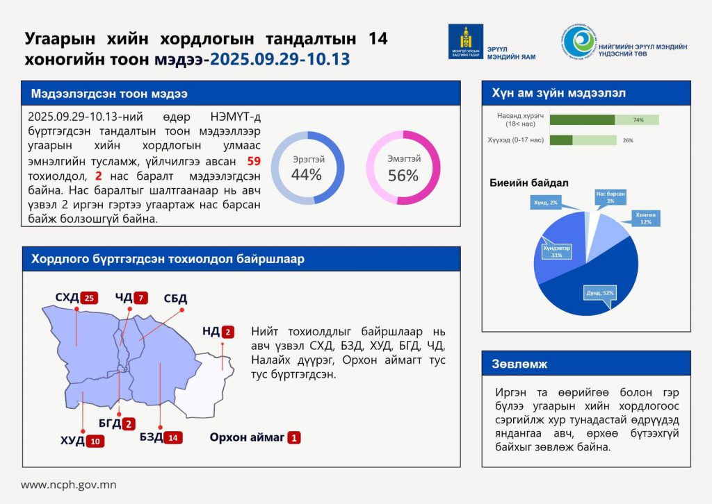 • Эмнэлгийн тусламж, үйлчилгээ авсан 59 тохиолдол