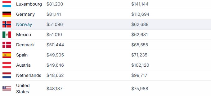 Дөнгөж их сургуулиас дунд сургуулийн багшаар төгсөж, ажлын гараагаа эхлүүлж байгаа залуу багшийн жилийн цалин 67 мянган евро буюу 70.323 мянган ам.доллар аж. Үүн дээр ажилласан жилийн туршлага нь 10 жил бол 20 мянган евро, 15 жил болон түүнээс дээш бол 31 мянган евро, 30 болон түүнээс дээш жилийн туршлагатай бол 119 мянган еврод хүрдэг.