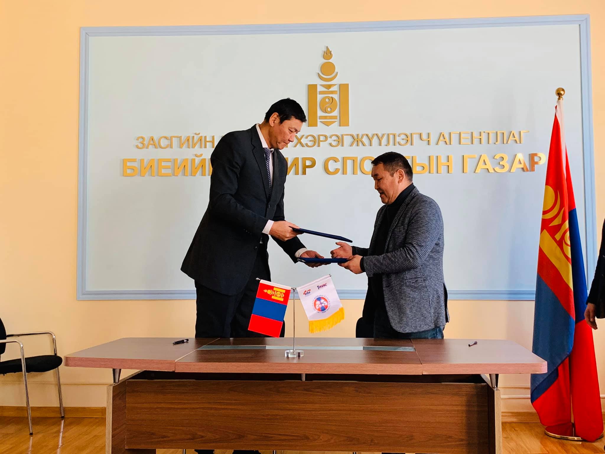 Гэрээнд гарын үсэг зурах үйл ажиллагаанд МЧБХ-ны Ерөнхий нарийн бичгийн дарга, Монгол улсын гавьяат дасгалжуулагч Б.Батбаяр, БТСГ-ын дарга, Монгол улсын гавьяат тамирчин Ц.Шаравжамц нар оролцож, гарын үсэг зурлаа.