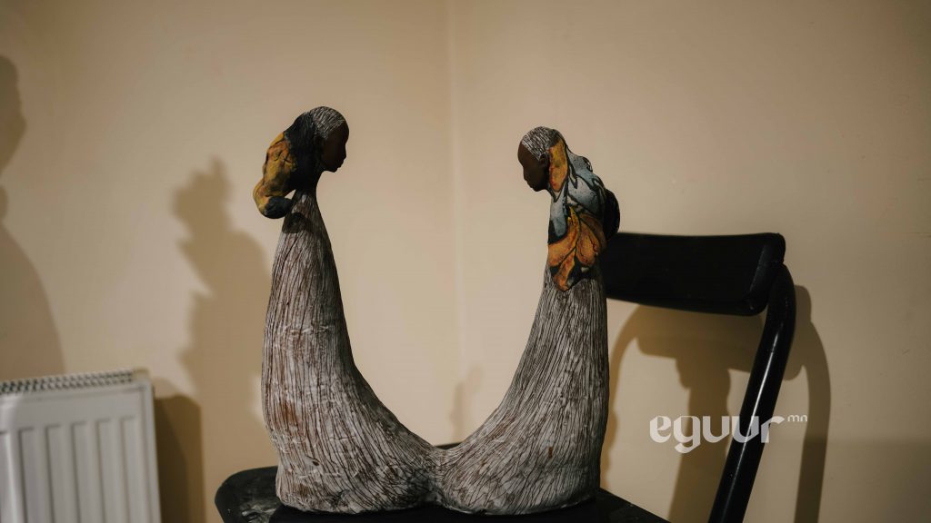 -Таван настайгаасаа л баримал хийсэн, ерөөсөө л тэр хүүхдийн хийхийг хүссэнийг гүйцэлдүүлж яваа мэт санагддаг. Доторх таван настай хүүхдийн хүсэл хаана хүрэхийг таашгүй юм. Би уг нь мэргэжлийн барималч болох туйлын хүсэлтэй байсан ч чадаагүй, керамиктай холбогдоод явчихсан. Заавал барималч биш ч, заавал урлагийн л хүн байх ёстой байсан нь үнэн.