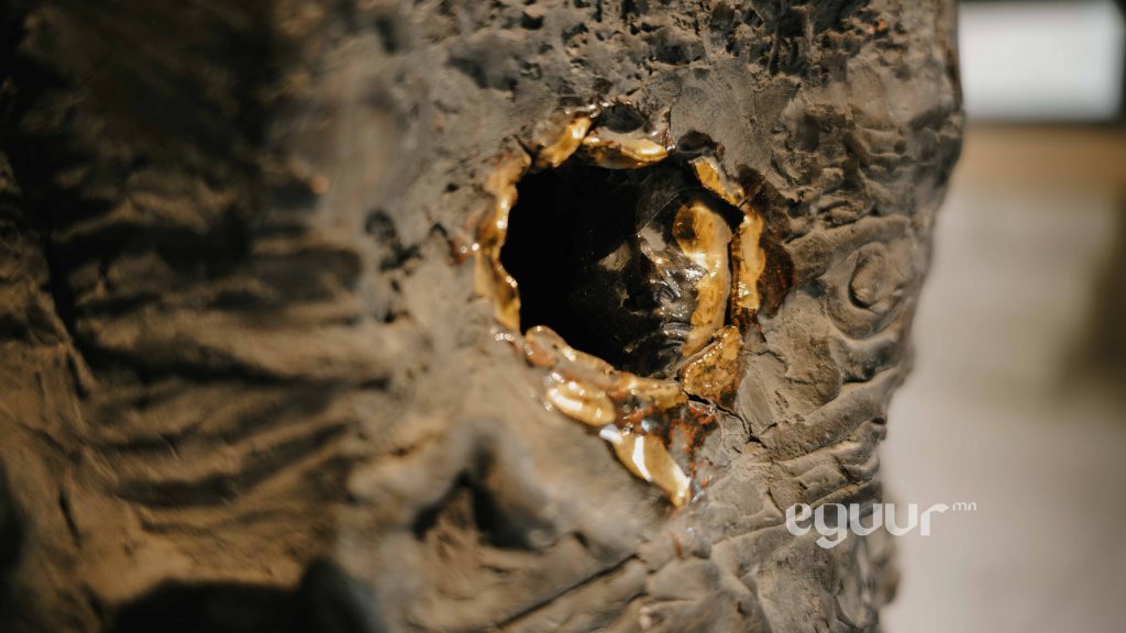 -Дутуу үлдээсэн ажил юм болов уу? Бид нар аягүй их нийгмийн талаар, бусдын тухай ярьдаг. Гэхдээ би ч бас тэр нийгмийн нэг эд эс нь мөн шүү дээ. Тийм учраас өөрийгөө илэрхийлж, өөрийгөө эмчилж анагааж явж байгаа нь л энэ байх талтай. Нэг тал нь л даа. Нэгэнт биежээд, галлерейд тавигдчихсан, гараас гарчихсан бүтээлд заавал гадагш чиглэсэн зорилго оноож өгөх хэрэг байна уу. Эцсийн эцэст, хийсэн юмыг нэг ч гэсэн хүн таашааж байвал аз ш дээ. Миний мэдрэмж байсан, түүнийг бодитжуулсан. Энэ бусдад хэрэгтэй бол хэрэгтэй, хэрэггүй бол хэрэггүй. Харин заавал бусдын төлөө ингэж бодож сэтгэж, зорьж хийсэн гээд байх шаардлагагүй байх аа.