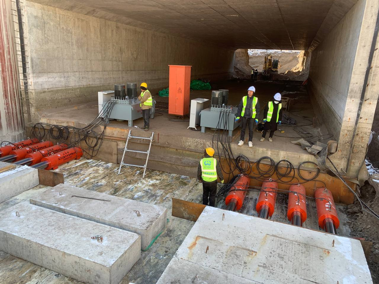 Хермес төвийн урд, төмөр замын зоорины нүхэн гарц их биеийн бэлтгэл ажил хийгдэж байгаа бөгөөд төмөр замын суурь бүтцийн доогуур түлхэх технологиор байрлуулж байна. Нийт 10 нэгж талбараас дөрвийг нь чөлөөлж, зургаан нэгж талбарт ААН-тэй зөвшилцөх шатандаа байгаа юм. Энэхүү нүхэн гарцын их биеийн цэвэр хэмжээ 38 метр урт, 12 метр өргөн, 3.5 метр өндөр байх юм. Өөрөөр хэлбэл, урьдчилан цутгасан 2200 тонн жинтэй туннелийг 500 тонны даацтай найман ширхэг домкрат, 76 литрийн тосны насос бүхий хоёр иж бүрдэл төхөөрөмжийн тусламжтайгаар түлхэж буй. Ажлын суурийг C25 маркийн төмөр бетон материалаар цутгаж, 4 метрийн өргөнтэй гулсах тавцан дээр уг ажлыг гүйцэтгэж байна.