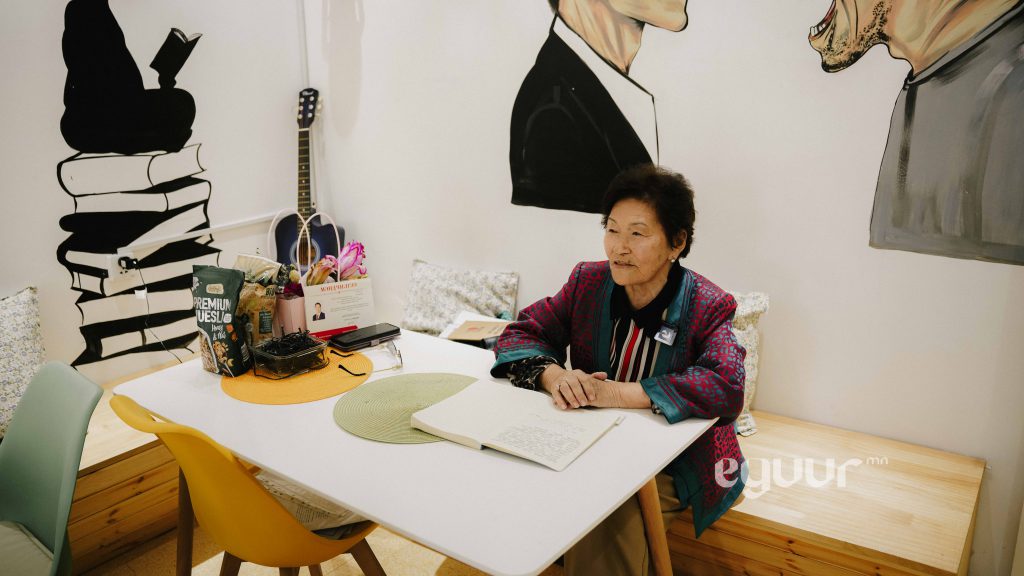 -Дүүргийн ажилчид их орж ирнэ ээ. Энд хүнтэй уулзах, ярилцах үедээ хэдэн ч цаг сууж болно. Кофегоо л ууж байвал бид төлбөр мөнгө авахгүй. Манай охин “та хүнд л амар амгалан,баяр баясгалан өгөөд бай. Танаас би байрны мөнгө нэхэхгүй, харин цалин өгье” гэдэг. Тэгэхээр нь би ийм юм ажиллуулж байж юу гэж цалин авах юм.Тэтгэврийн мөнгөө авчихна гээд инээлддэг. Харин ч надад та нар шиг ингээд ороод ирсэн хүнтэй инээж хөхрөөд, ярилцаад суух гоё байгаа юм чинь. Өглөө бас гэрийнхээ хувцсыг солиод ажилдаа явлаа гээд гарах сайхан шүү дээ. Орой зөндөө баясгалантай хүн гэртээ очно. Хэн ч надаас төлөвлөгөө, норм гэж шаардахгүй сайхан байна.