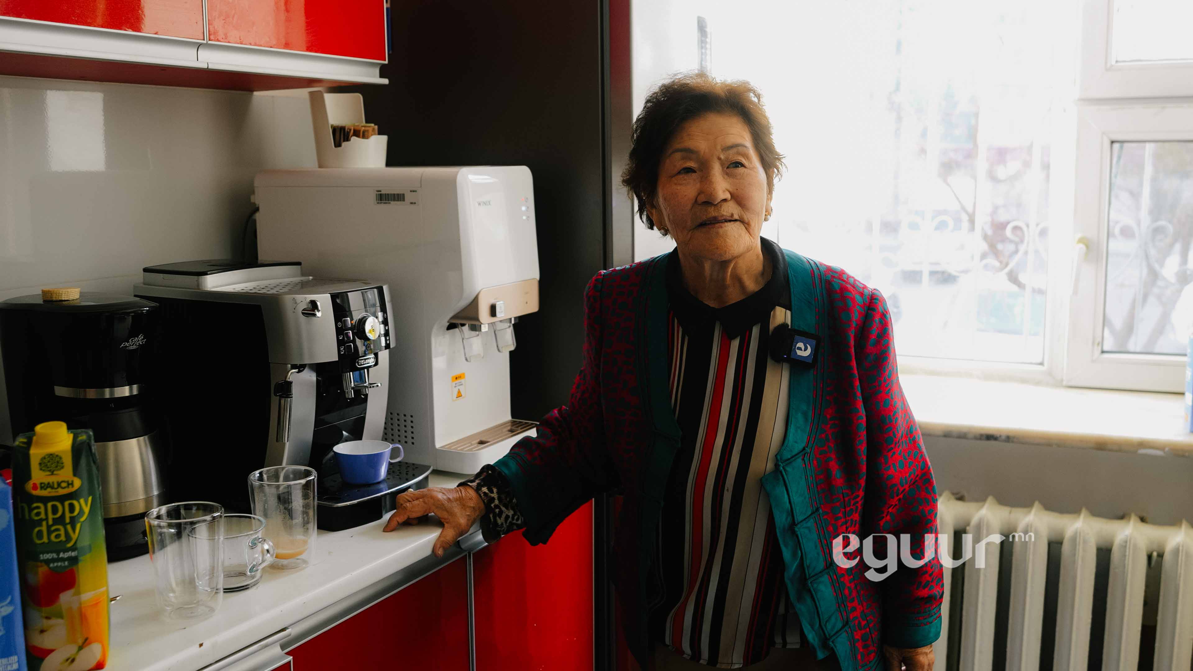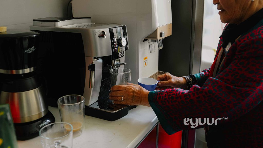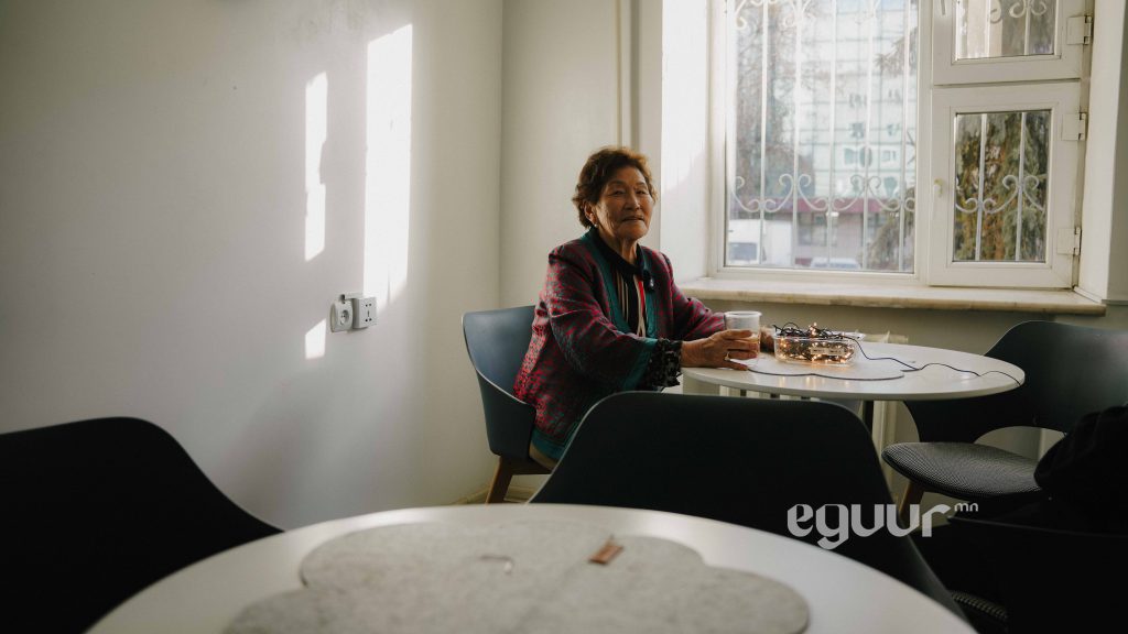 -Дүүргийн ажилчид их орж ирнэ ээ. Энд хүнтэй уулзах, ярилцах үедээ хэдэн ч цаг сууж болно. Кофегоо л ууж байвал бид төлбөр мөнгө авахгүй. Манай охин “та хүнд л амар амгалан,баяр баясгалан өгөөд бай. Танаас би байрны мөнгө нэхэхгүй, харин цалин өгье” гэдэг. Тэгэхээр нь би ийм юм ажиллуулж байж юу гэж цалин авах юм.Тэтгэврийн мөнгөө авчихна гээд инээлддэг. Харин ч надад та нар шиг ингээд ороод ирсэн хүнтэй инээж хөхрөөд, ярилцаад суух гоё байгаа юм чинь. Өглөө бас гэрийнхээ хувцсыг солиод ажилдаа явлаа гээд гарах сайхан шүү дээ. Орой зөндөө баясгалантай хүн гэртээ очно. Хэн ч надаас төлөвлөгөө, норм гэж шаардахгүй сайхан байна.
