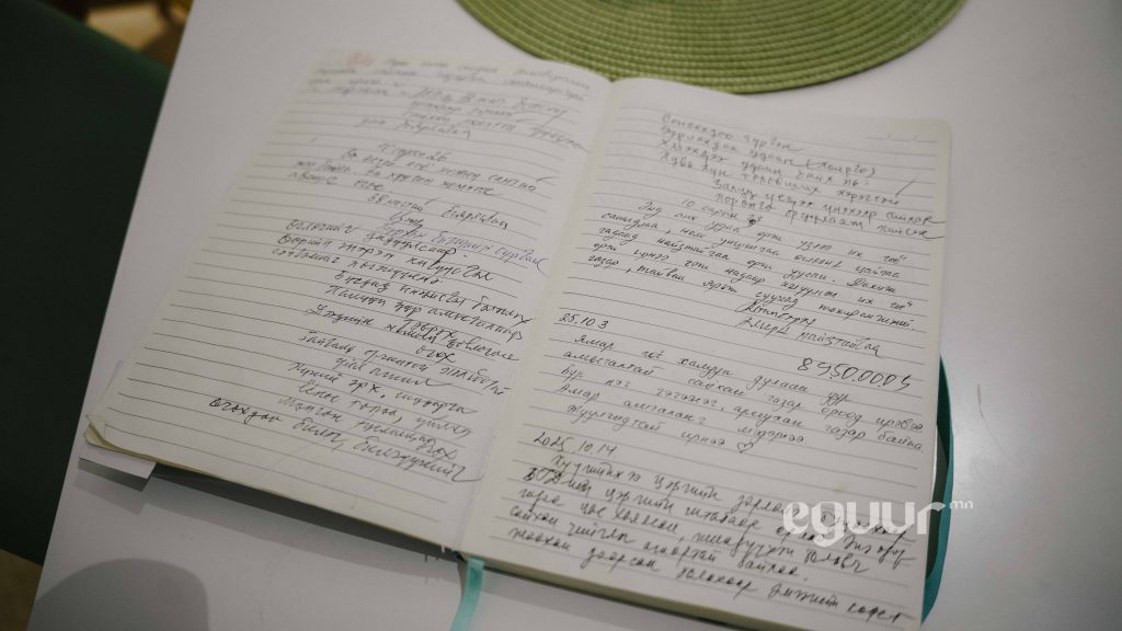 -Манайх “Бичил” хороололд амьдардаг. Намайг өдөр ирэх хүртэл охины маань ангийн хүүхэд ажиллуулдаг. Бид хоёр солигддог юм. Манай охин группэд байдаг ангийнхаа хүүхдийг цалинжуулаад, ажилд авсан. Ингээд тэр охин бид хоёр өглөө, орой хувааж ажилладаг. Энэ охины маань бие бас сайнгүй байгаа учраас өвөл ганцаараа л ажиллах юм шиг байна. Хэрэв тэгвэл өглөө 10 цагт ирээд орой 16 цагтаа хаагаад, харина даа.