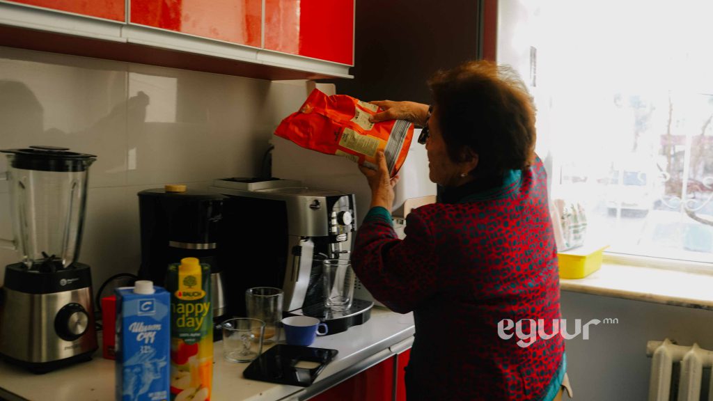 -Манай өвгөн одоо 84 настай. Хөлдөө бэртэл авсан учир өглөө босож цай хоолыг нь хийж өгч, асраад өдөр 12 цагт ирж байгаа. Тэгээд 16 цаг хүртэл ажилладаг.