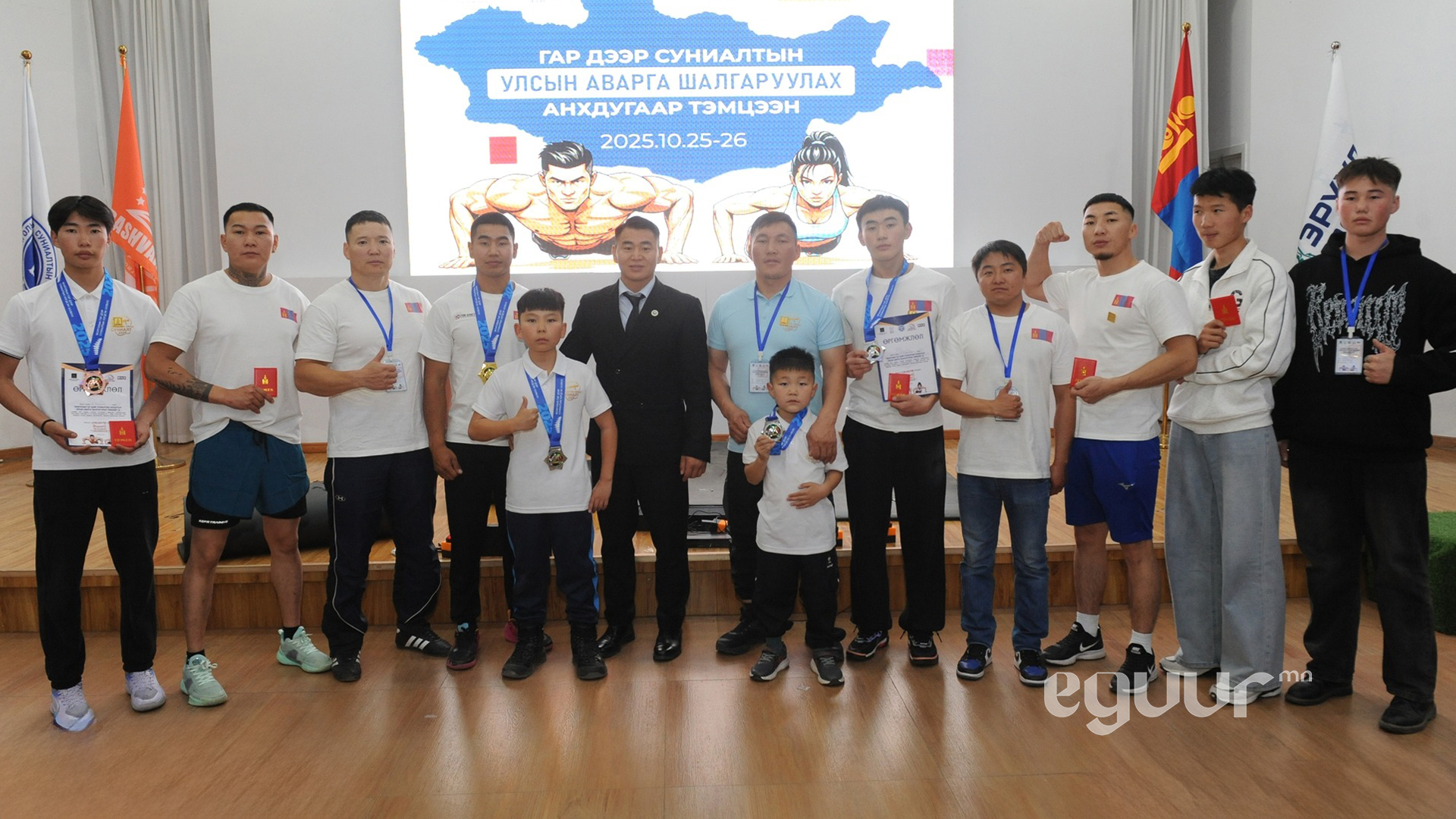 Тэгвэл 23-26 насны эрэгтэйчүүдийн ангилалд Дундговь аймгийн Дэлгэрцогт сумын харьяат спортын мастер Б.Пэрэнлэйдорж 33 минутад 1000 удаа гар дээр суниалт хийж дээд амжилт тогтоолоо. Тэрбээр өмнө нь энэ амжилтаа үзүүлж байсан бөгөөд анхдугаар УАШТ-нд давтаж албан ёсоор монголын гар дээр суниалтын дээд амжилтыг тогтоосон юм.