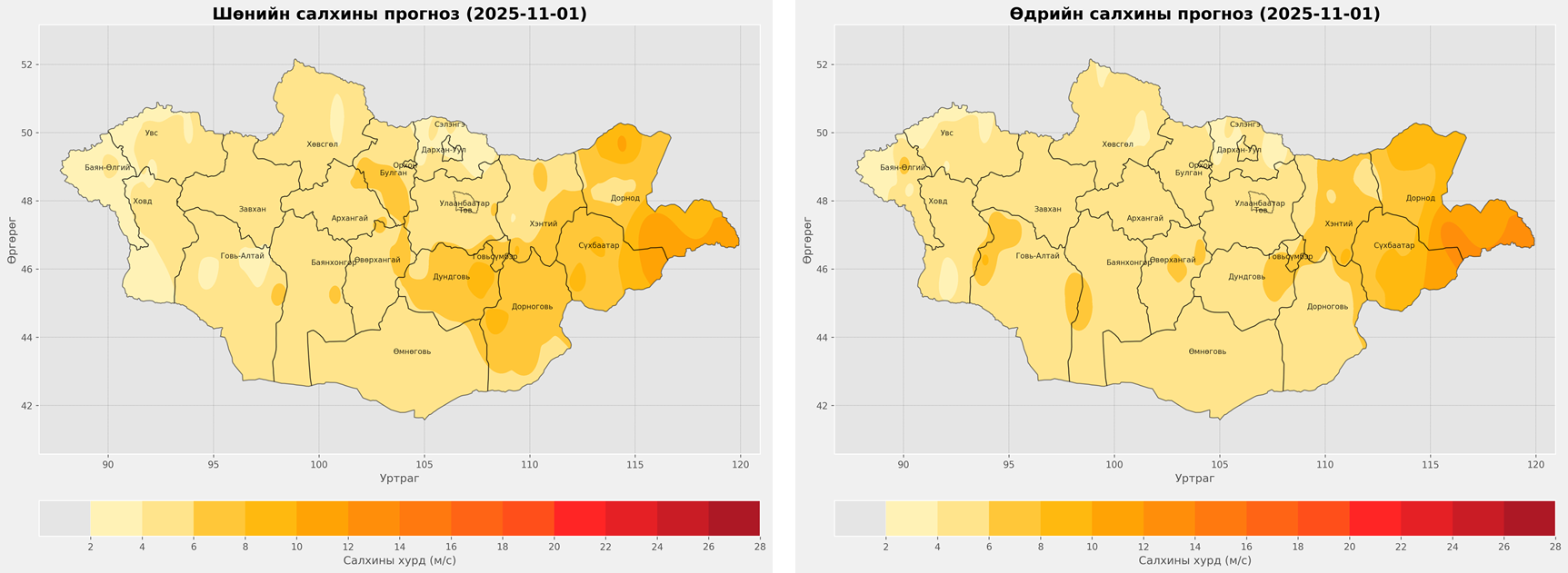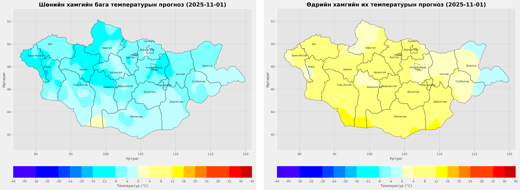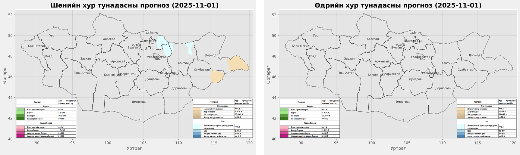 2025 оны 11-р сарын 01-ний цаг агаарын урьдчилсан мэдээ