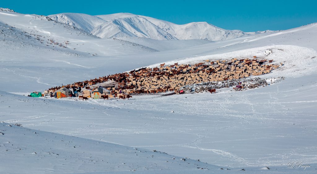 Увс нуурын ай савд намаржсан айлууд шинэ орсон зузаан цас зүсэн өвөлжөөнийхөө зүг хөдөлж байна.