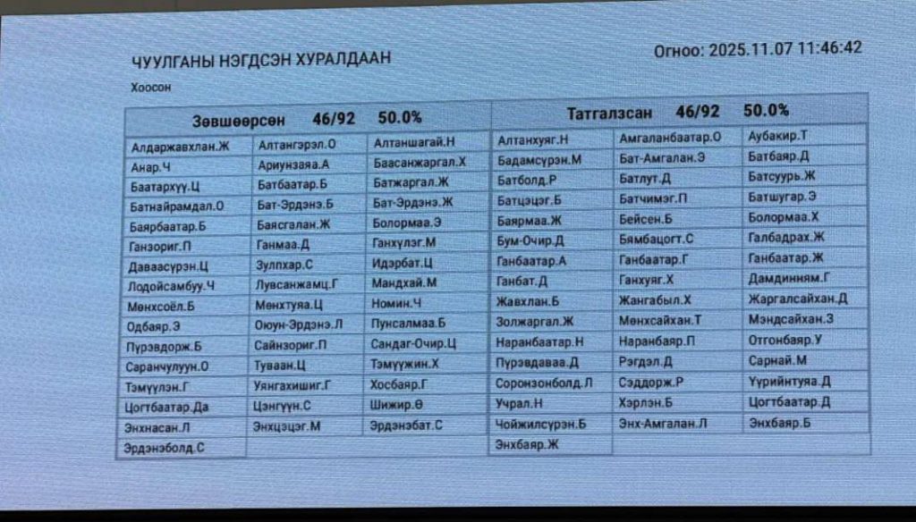 Кнопны асуудлаар хойшилсон Л.Оюун-Эрдэнийн Түр хороо байгуулах санал хураалт үргэлжилнэ