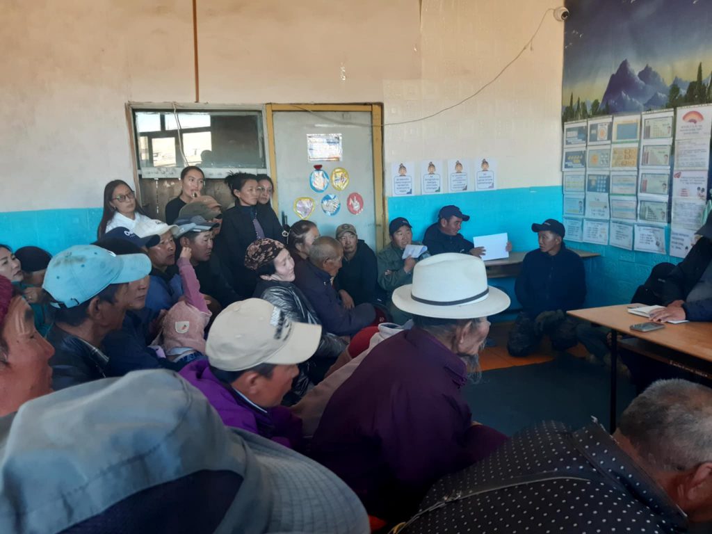 Зургийн тайлбар: Бугат сумын иргэд чоно агнах талаар хуралдаж буй нь