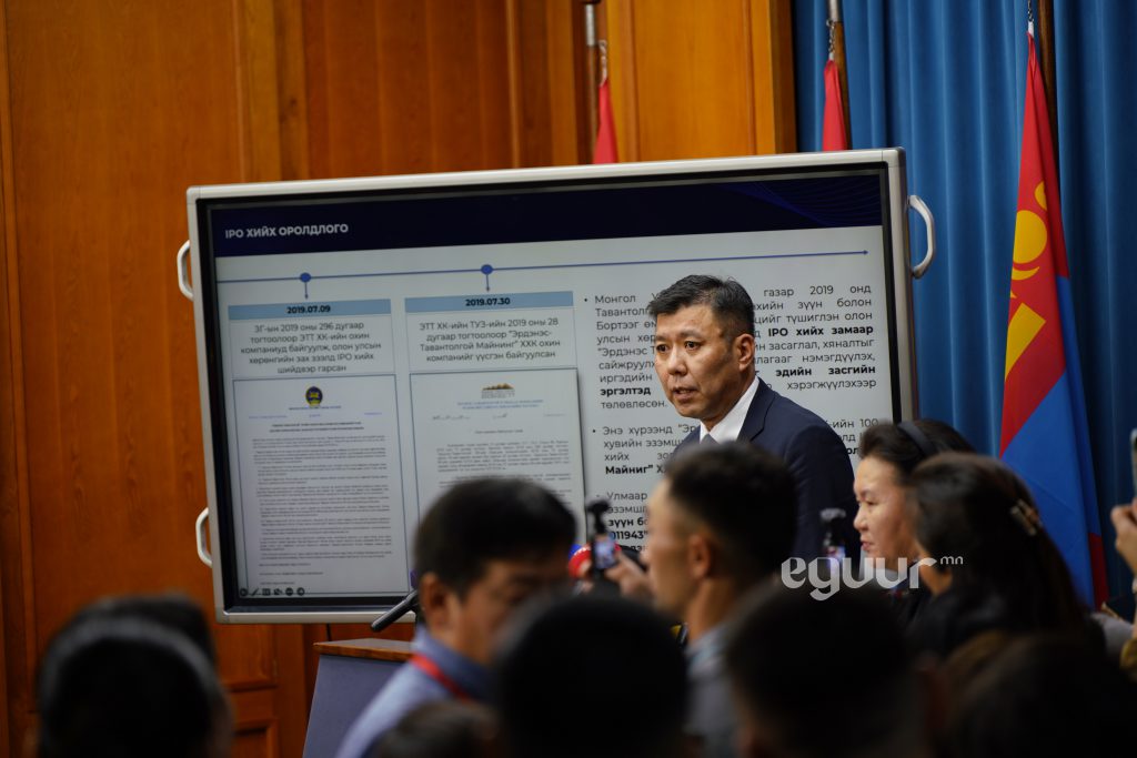 Түүнчлэн, "Эрдэнэс Оюутолгой" ХХК-ийн 20 сая ам.долларын талаар "2024.09.24-нд "Лхагвын тойм" нэвтрүүлэгт ордог өдөр "Хууль зөрчин албаны нууцад авсан гэрээнүүд тэдгээртэй холбоотой материалыг 2025.09.24-ны дотор ХЗДХЯ, Эрдэнэс Оюутолгой компанид үүрэг болгосон" ЗГ-ын шийдвэр гарсан. "Эрдэнэс Оюутолгой" бол Эрдэнэс Монгол"-ын охин компани. "Эрдэнэс Оюутолгой" компани 20 сая ам.долларыг Засгийн газарт өгөхөөс нэг хоногийн өмнө яаж зарцуулах вэ гэдэг шийдвэрээ гаргачихсан байсан. ЗГ зарцуулах шийдвэр гаргасны маргааш нь "Эрдэнэс Толгой"-н ТУЗ жилд 5 сая ам.доллароор шилжүүлэхээр шийдвэрлэсэн. Нийтдээ 11 багц гэрээгээр зарцуулах шийдвэр. Атикус партнер гэх компанид Монгол хаан жүжгийн сурталчилгааны зардалд 1,7 сая ам.доллар шилжүүлэхдээ 765 мянгыг нь “Халааснаас гарах зардал” гэж шилжүүлжээ. Халхавч, мөнгө угаах шинжтэй хэлцлүүд байсан гэдэг нь урьдчилсан байдлаар тогтоогдсон. Гадаад харилцааны яамнаас гадуур Монгол Улсын аль нэг сайд ЗГ-ын гишүүдийн гадаад уулзалтыг зохион байгуулсан, санхүүжилт өгсөн үйл баримт нь зөвхөн мөнгө угаах гэмт хэрэг биш ҮАБ-д харшилна" гэлээ.