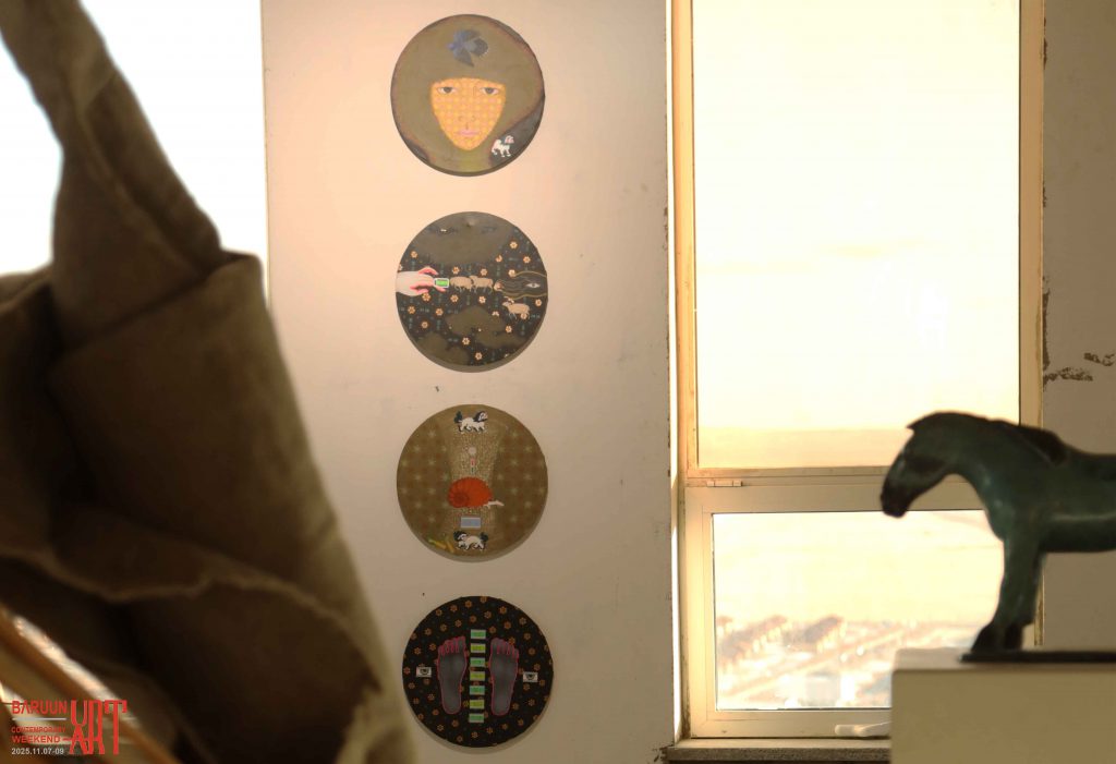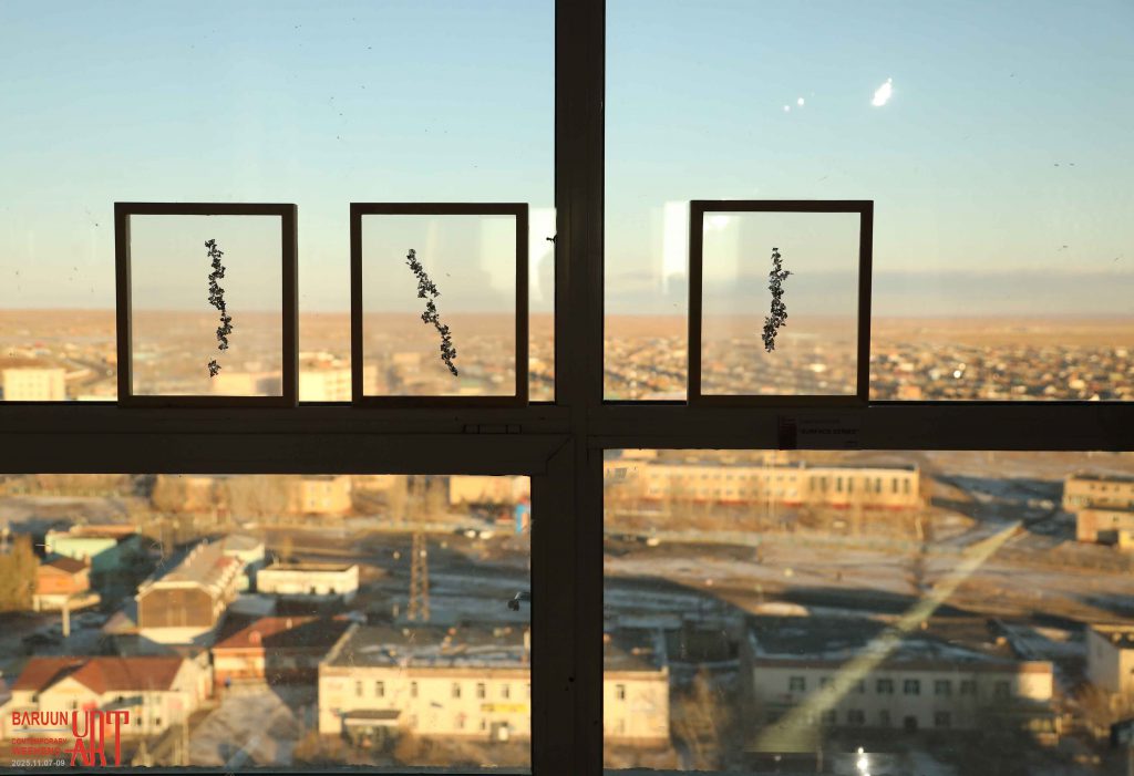 Маргааш нь бид Ж.Мөнхцэцэгийн өмнө нь зээрийн сэдвээр бүтээж байсан дүрслэх урлагийн зарим бүтээл, инстоляц бүхий багашаар үзэсгэлэн "Дарьганга" зочид буудалд дэлгэгдсэн байхыг үзэв.