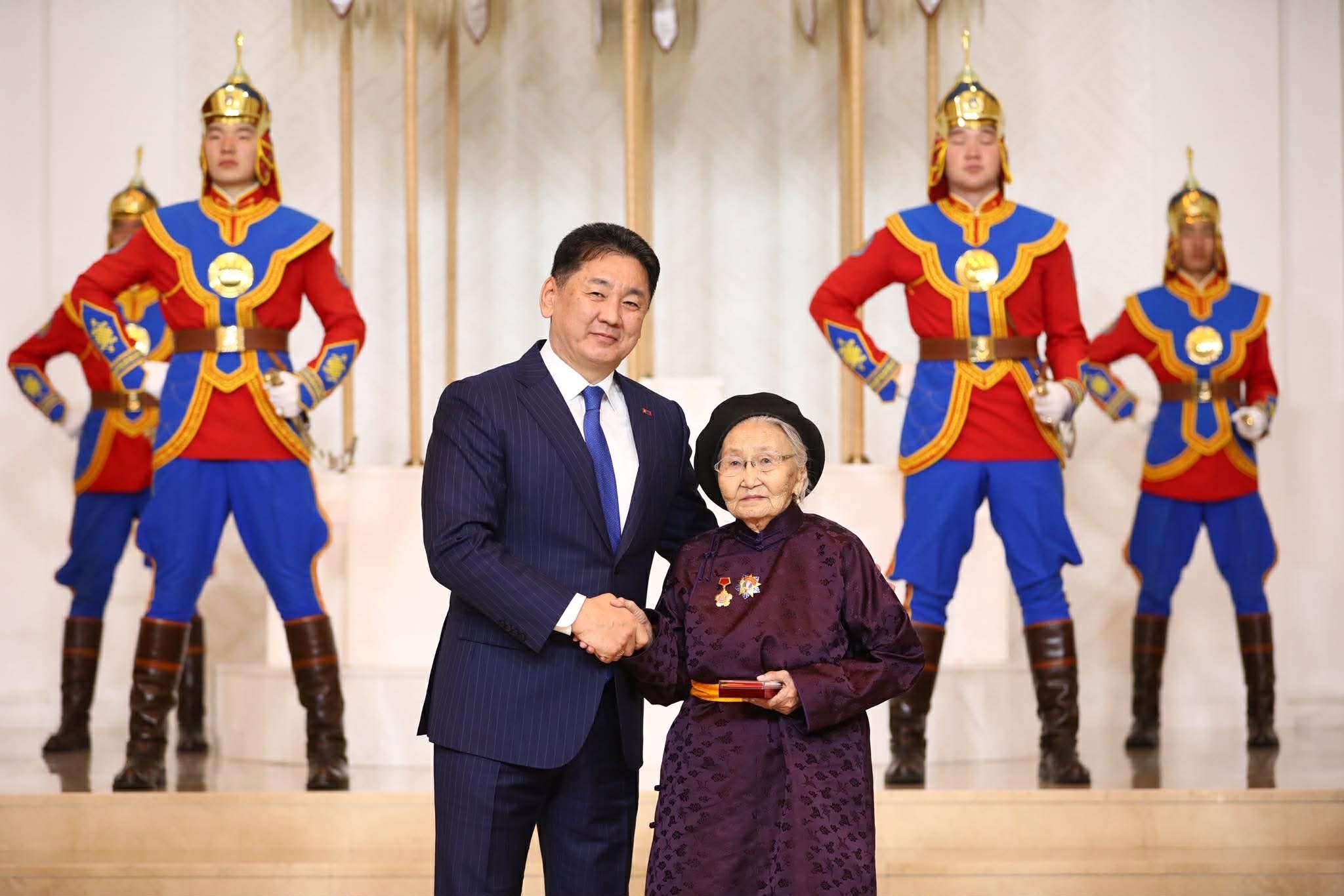 Анхдугаар Үндсэн хуулиа баталж, Бүгд Найрамдах Улсаа тунхагласны түүхт 101 жилийн ойг тохиолдуулан Монгол Улсын Ерөнхийлөгч Ухнаагийн Хүрэлсүх нэр бүхий эрхмүүдэд төрийн дээд цол, одон, медаль гардуулсан юм. “Загасны Дулмаа” хэмээн олноо алдаршсан академич Аюурын Дулмаад Хөдөлмөрийн баатар цол хүртээлээ.