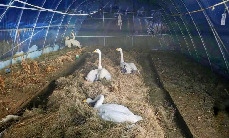 Намар буцаж чадалгүй үлдсэн таван хун шувууг сумын төвд авч ирсэн байна