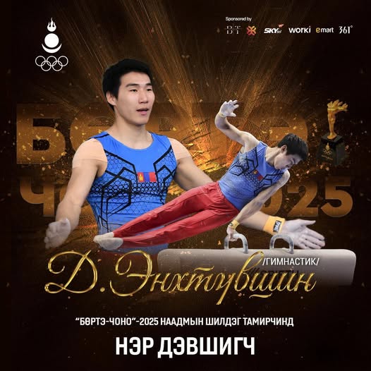 Монголын гимнастикийн спортын 104 жилийн түүхэнд анх удаа насанд хүрэгчдийн ангилалд Дэлхийн цомын аварга шалгаруулах тэмцээний харайлтын төрөлд IV байрт шалгарсан амжилтаар “Бөртэ Чоно-2025" наадмын шилдэг тамирчинд нэр дэвшиж байна.