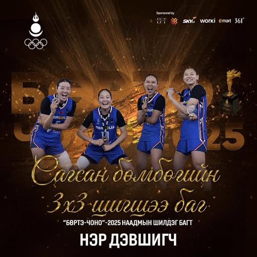 3х3 сагсан бөмбөгийн ДАШТ-д мөнгөн медаль хүртсэн амжилтаар “Бөртэ Чоно-2025" наадмын шилдэг багт нэр дэвшиж байна.