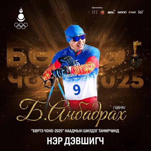 “Милан Кортина- 2026” өвлийн олимпын наадамд гүйлтийн цанын төрөлд өрсөлдөх эрхээ авч, дугуйт цанын Азийн цомын хүрэл медаль хүртсэн амжилтаар “Бөртэ Чоно-2025" наадмын шилдэг тамирчинд нэр дэвшиж байна.