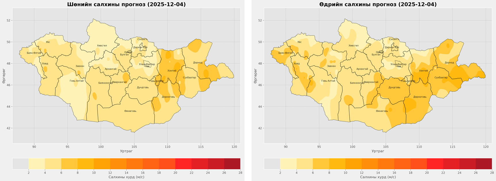 2025 оны 12-р сарын 03-ны 20 цагаас 04-ний 20 цаг хүртэлх цаг агаарын урьдчилсан мэдээ: