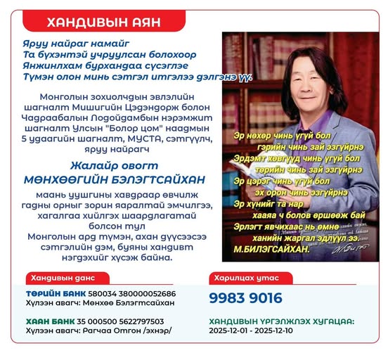 Эрчүүдээ өмөөрч бичсэн яруу найрагч М.Бэлэгтсайхан тусламжийн гараа сунгахыг хүслээ