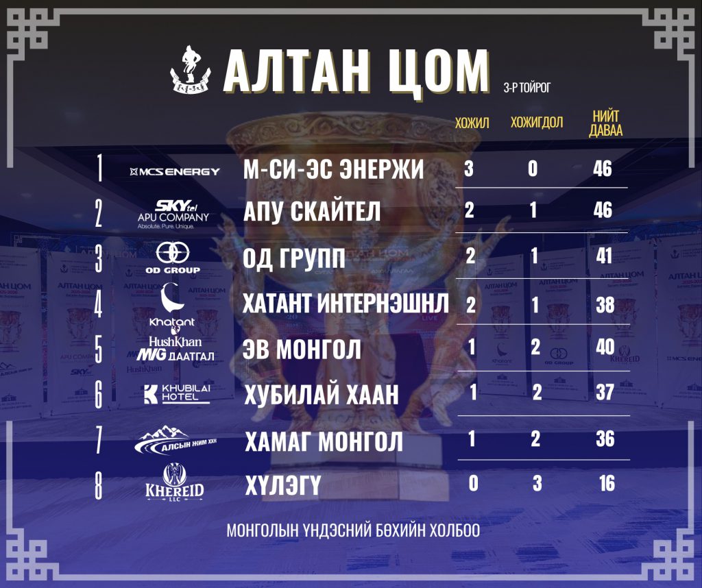 "М-СИ-ЭС ЭНЕРЖИ" баг 46 даваатайгаар "Алтан цом"-ыг тэргүүлж байна