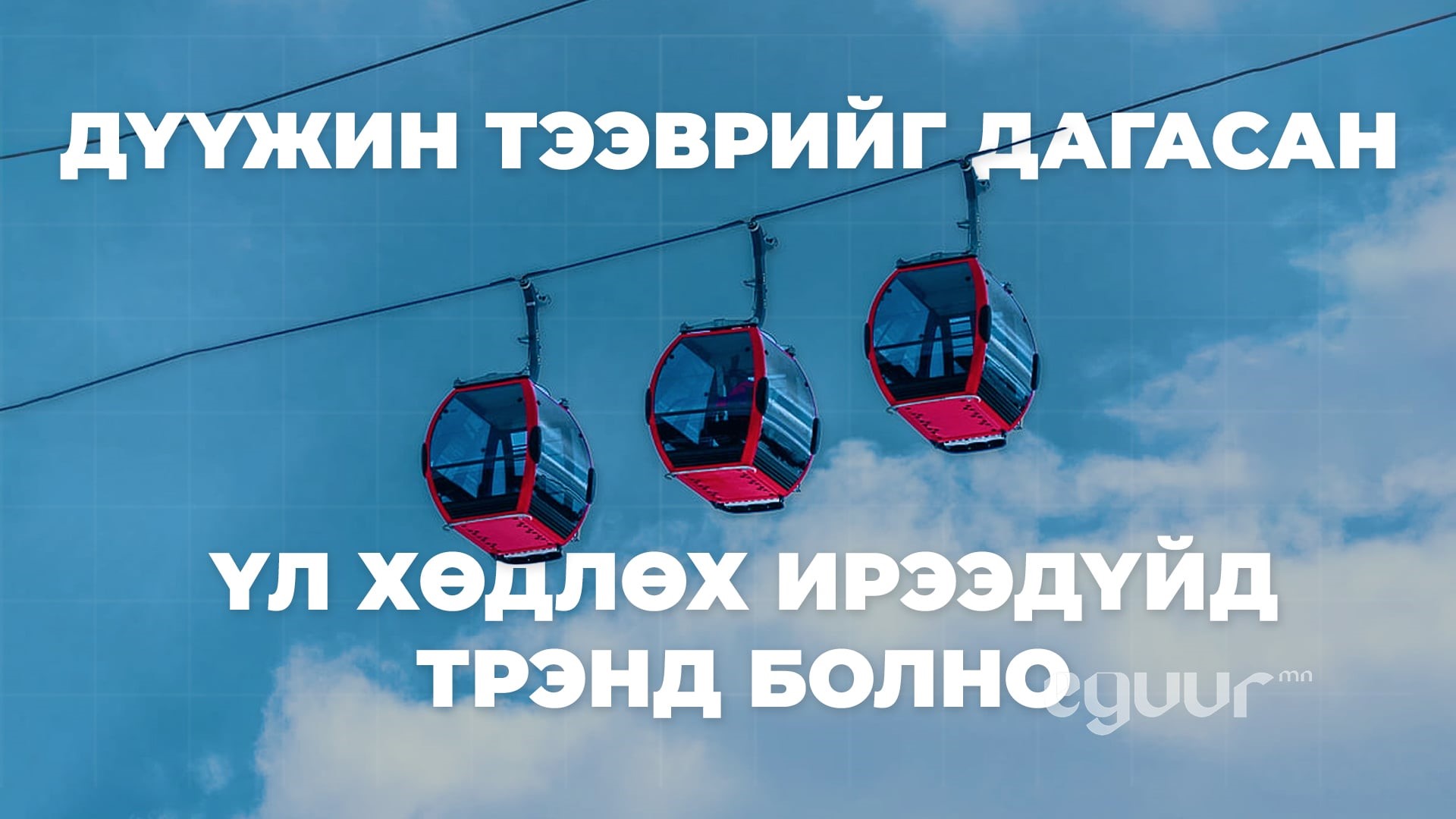 Газар хөдлөлтөд тэсвэртэй, геологийн онцлогт тохирч олон улсын стандартыг хангасан аюулгүй технологи бүхий бүтээн байгуулалтыг ийн урагшилсаар байгаа нь удалгүй бид дүүжин тээврийн хэрэглээг нэвтрүүлж эхэлнэ гэсэн үг юм. Гэхдээ холын зорилт бус ердөө ирэх оны 3-р сард эхний туршилтаа хийх талаар нийслэлийн удирдлагууд илэрхийлсэн. Дүүжин тээвэр төслийн буудал тулгуур угсралтын ажил 42.5 хувьтай, тулгуур багануудын суурийн ажил 92 хувь, буудлын барилгын каракасын бетон цутгалт 75 хувьтай явагдаж байна.