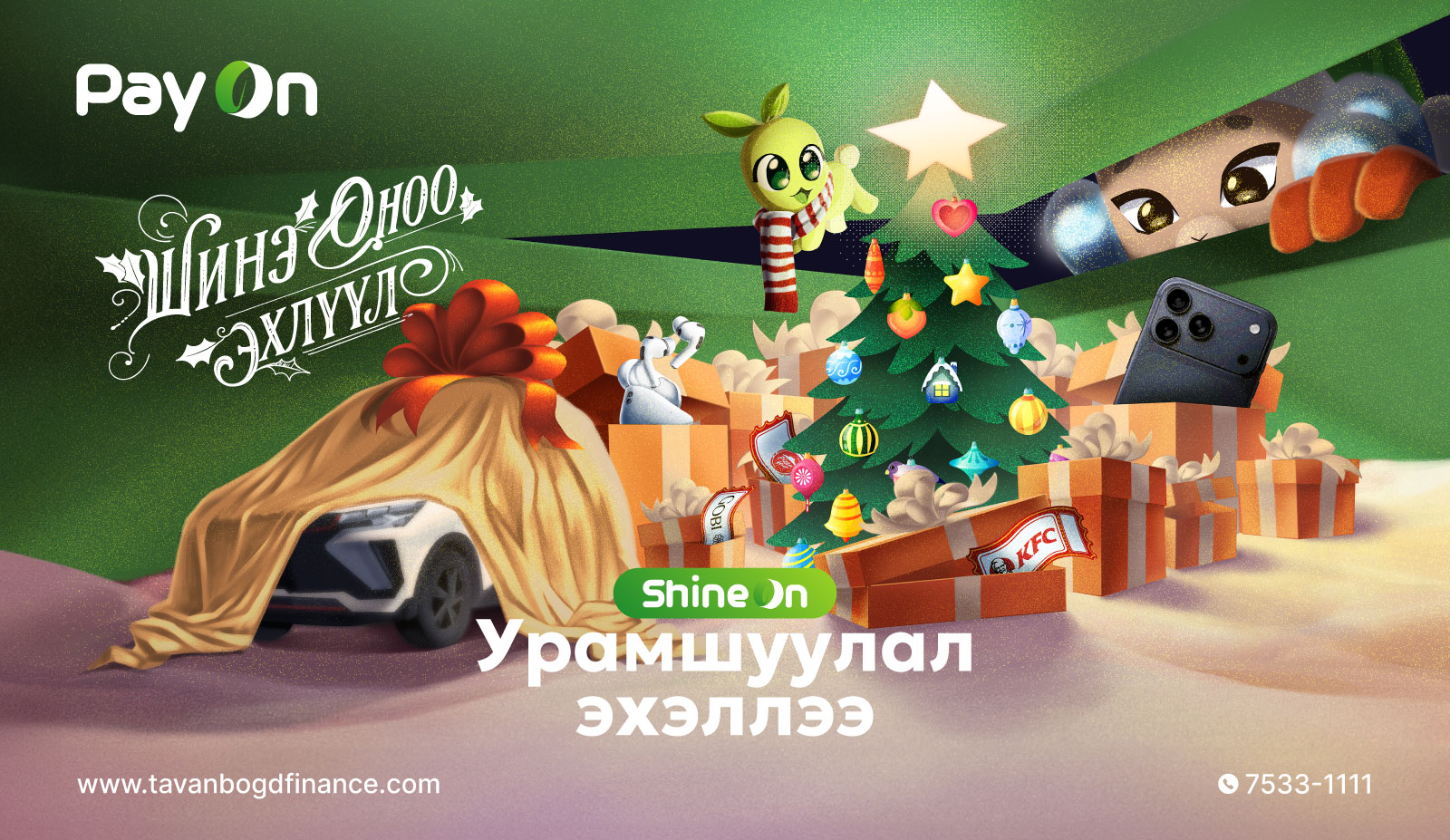Шинэ жил бол хүмүүсийн хамгийн их хүлээдэг, аз жаргал, урам зориг бэлгэдсэн баяр. Энэ баярын үнэ цэн нь зөвхөн бэлэг авахад бус, бусдад дулаан сэтгэл, сайхан мэдрэмж түгээхэд оршдог. PayOn брэнд энэ утга учрыг улам тодруулж, харилцагч бүрт бодит үнэ цэнтэй боломжуудыг санал болгосон ShineOn шинэ жилийн урамшууллаа албан ёсоор эхлүүллээ.