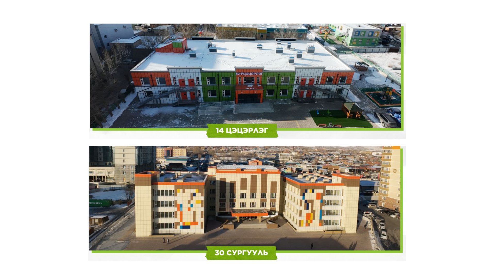 Ташрамд, нийслэлийн хэмжээнд 2025 онд долоон сургууль, 19 цэцэрлэг, долоон бага сургууль, цэцэрлэгийн цогцолбор, хоёр спорт заал, нийт 35 барилга байгууламжийг ашиглалтад хүлээлгэн өгсөн. Ингэснээр 10 мянга орчим хүүхэд хамран сурах тойрогтоо сургууль, цэцэрлэгт суралцах боломжтой болсон юм.