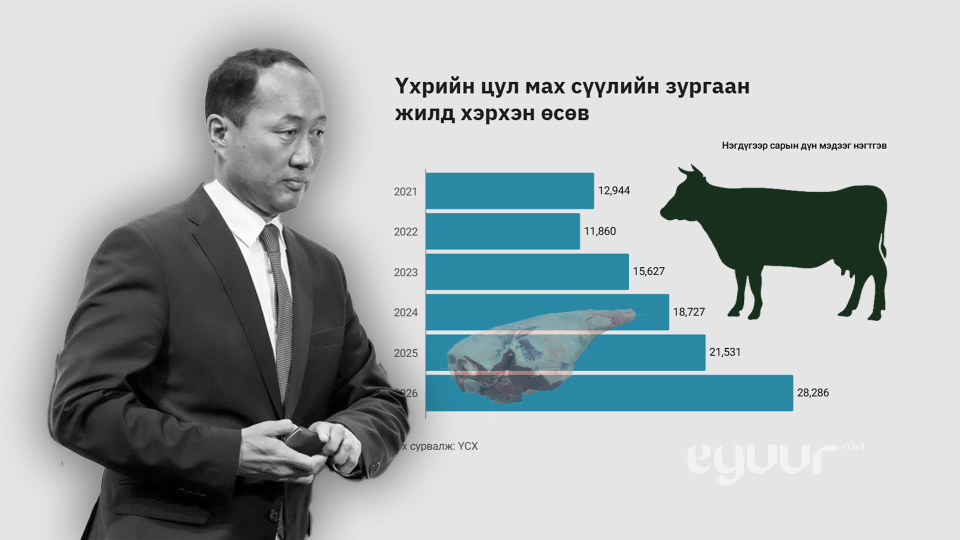 Ерөөс сүүлийн жилүүдэд үхрийн цул махны үнэ 25 мянгыг давж байгаагүй. Гэтэл мах ховордож, үнэ өсдөг хавар цагт бус нэгдүгээр сарын сүүл гэхэд 28 мянга давчихлаа.