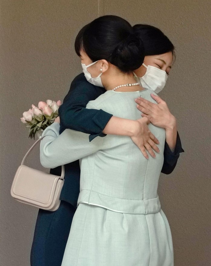 Усан цэнхэр даашинзтай Мако гүнжийг дүү Како нь тэврэн үдэж буй үе