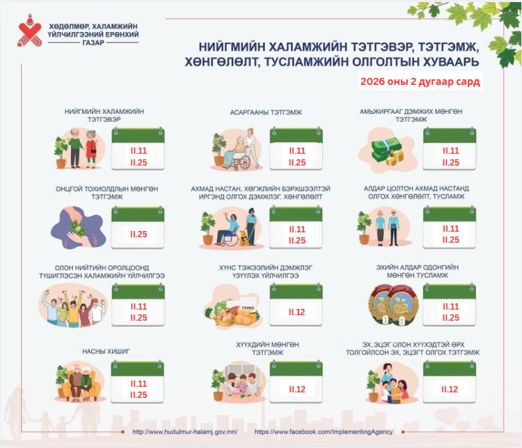- Амьжиргааг дэмжих мөнгөн тэтгэмж /02.11-02.25/