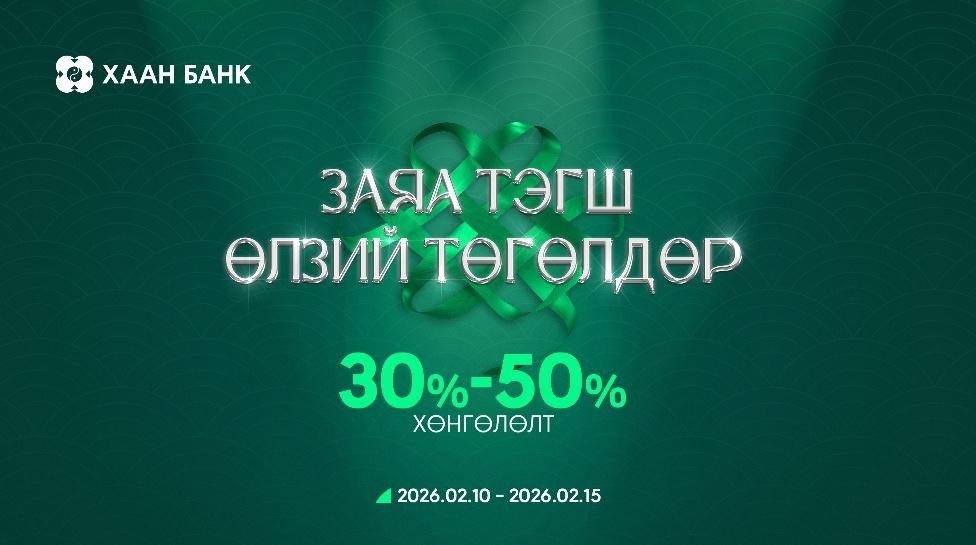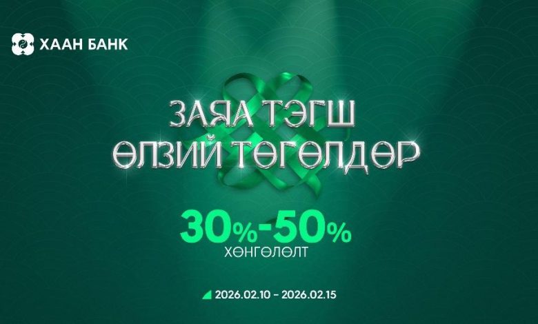 Тодруулбал, 2026 оны 2-р сарын 10-15-ны өдрийг дуустал ХААН Банкны Priority, Signature дебит карт болон бүх төрлийн кредит карт эзэмшигчид сонгогдсон байгууллагуудаар үйлчлүүлэхдээ 30–50 хүртэл хувийн хөнгөлөлт эдлэх боломжтой.