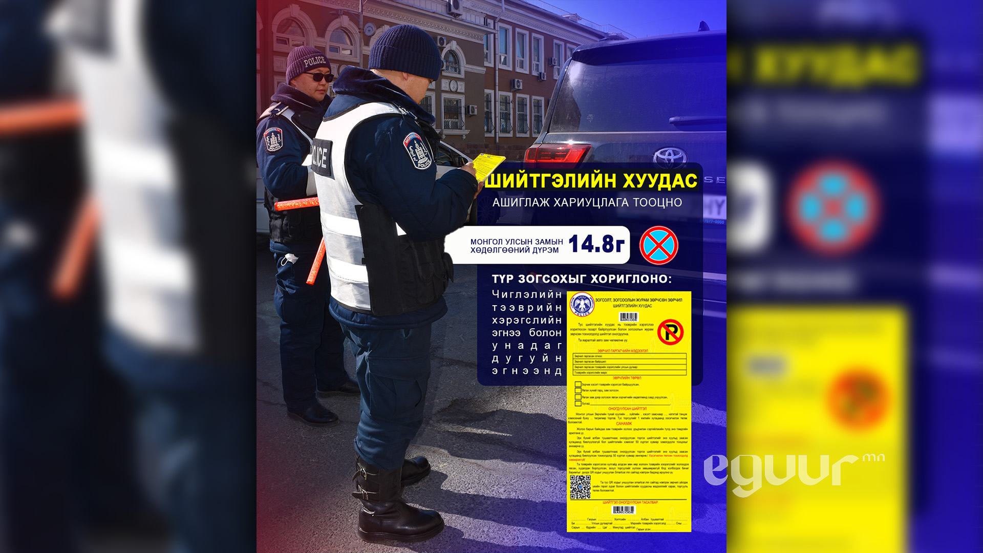 Энэ тохиолдолд анхааруулах зорилгоор “Шар хуудас” буюу шийтгэлийн хуудсыг тээврийн хэрэгсэлд наан байршуулж байгаа юм. Иймд жолооч нарыг бусдын хөдөлгөөнд саад учруулахгүйгээр замын хөдөлгөөний дүрмээ баримтлан соёлтой оролцохыг цагдаагийн байгууллагаас зөвлөлөө.
