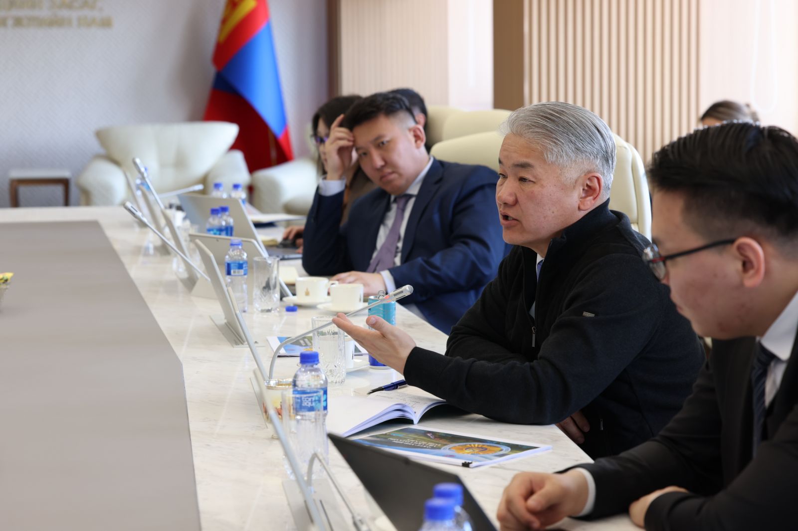 Тэргүүн Шадар сайд бөгөөд Эдийн засаг, хөгжлийн сайд Ж.Энхбаяр уул уурхайн бүтээгдэхүүний экспорт, бүс нутгийн худалдаа, логистикийн урсгал нэмэгдэхийн хэрээр төмөр замын тээврийн салбарын ач холбогдол улам нэмэгдэж байгааг онцлоод, салбарын бүтээн байгуулалт, хөрөнгө оруулалт, эдийн засгийн үр өгөөжийг нэмэгдүүлэхэд хамтран ажиллахаа илэрхийлэв. “УБТЗ” ХНН-ийн зүгээс тавьсан саналуудыг эдийн засгийн үр өгөөжөөр эрэмбэлж, тооцоо судалгаа нэн яаралтай хийж танилцуулахыг даалгав. Уулзалтад талуудын холбогдох албаны хүмүүс байлцлаа.
