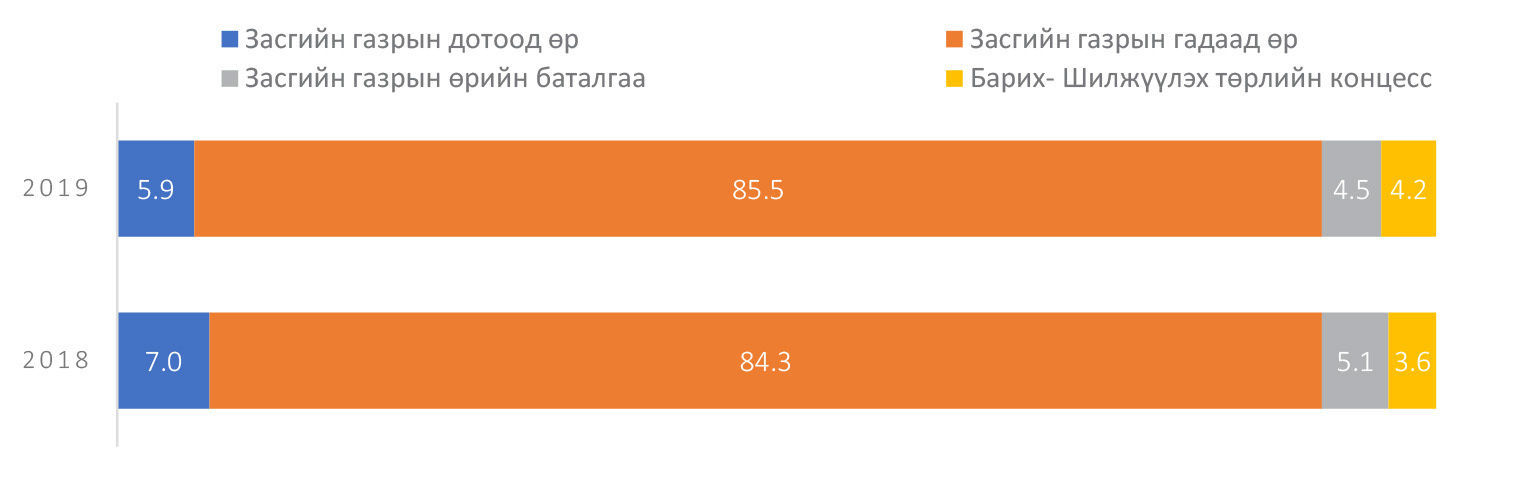 Засгийн газрын нийт өр өсөхөд Засгийн газрын дотоод өр 10.6%, өрийн баталгаа 4.8% буурсан ч Засгийн газрын гадаад өр 8.4%, барих-шилжүүлэх төрлийн концесс 23.5% өссөн нь нөлөөлжээ.