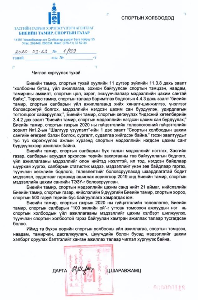 БТСГ-аас Спортын холбоодод чиглэл хүргүүлэв