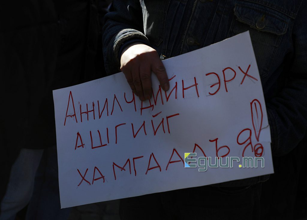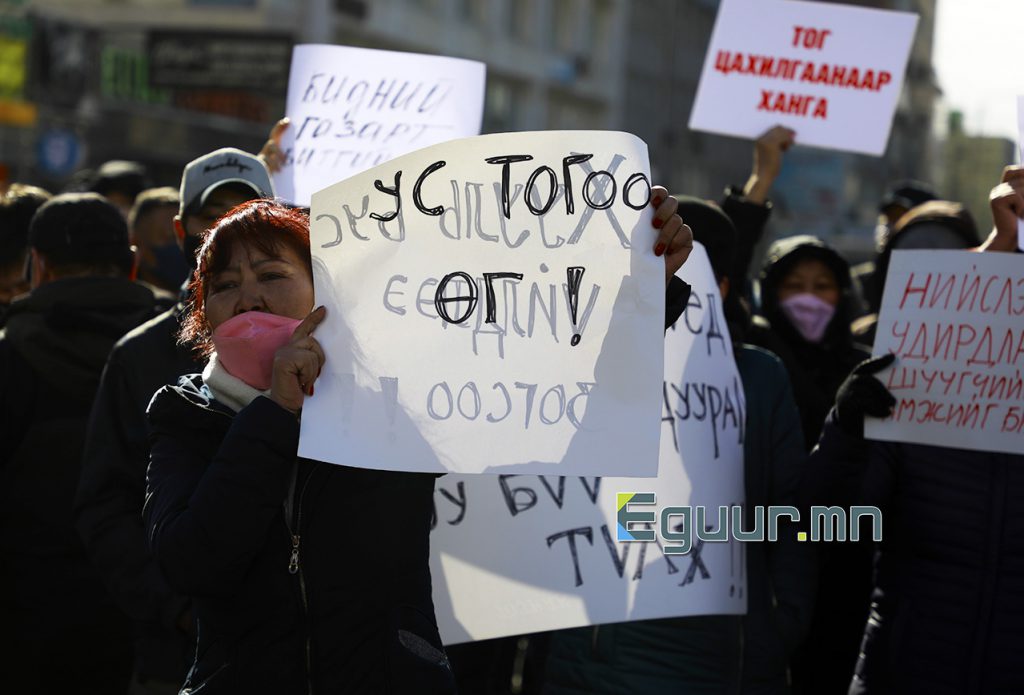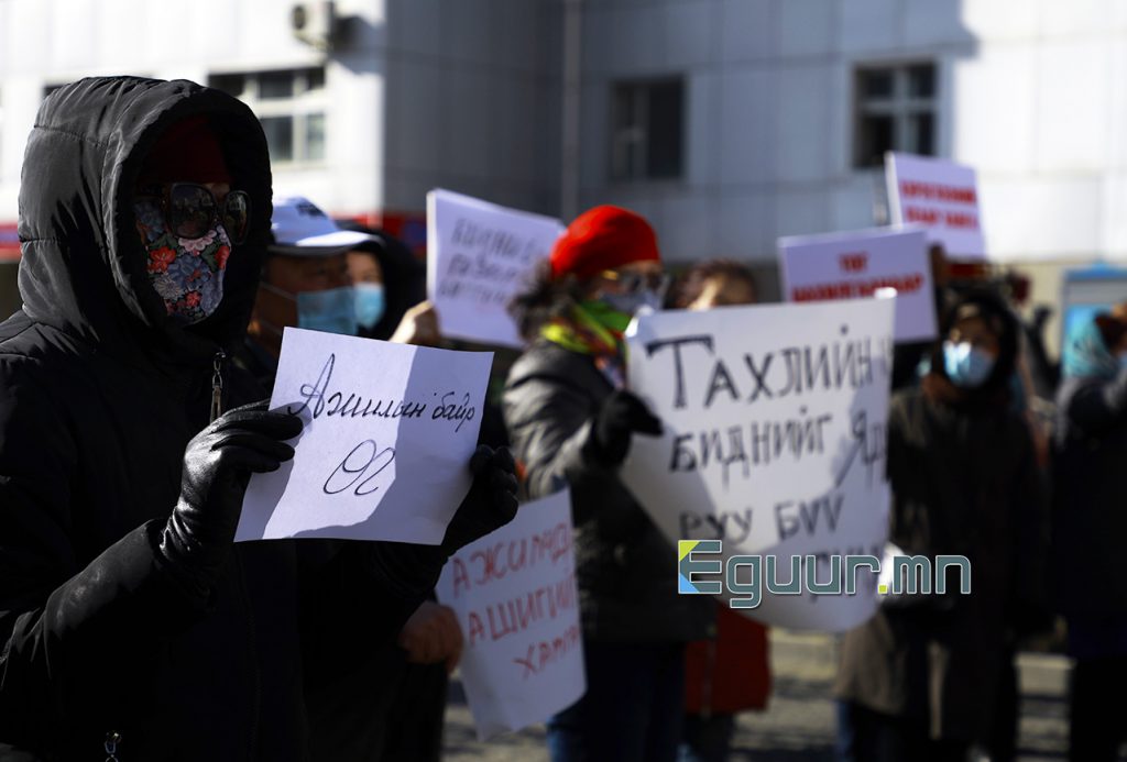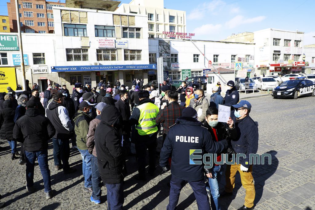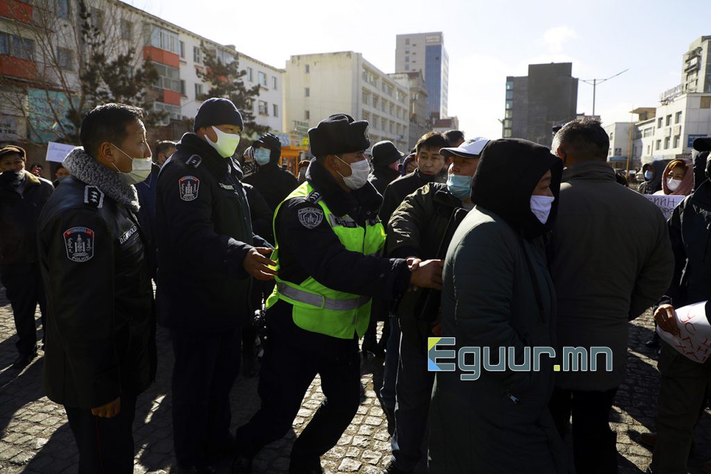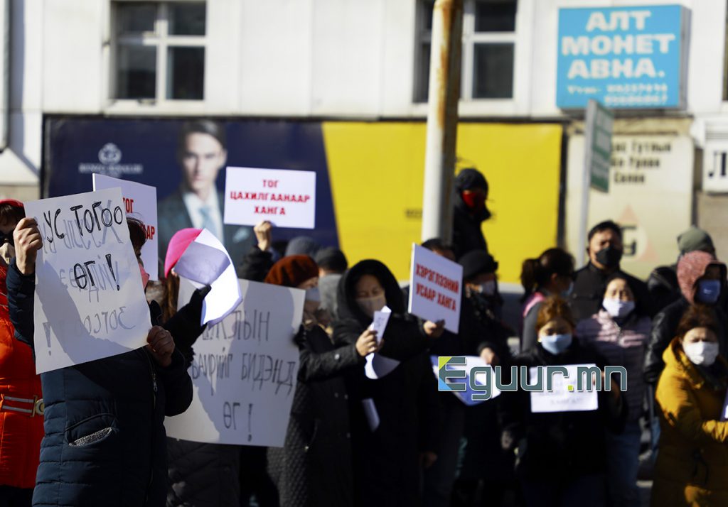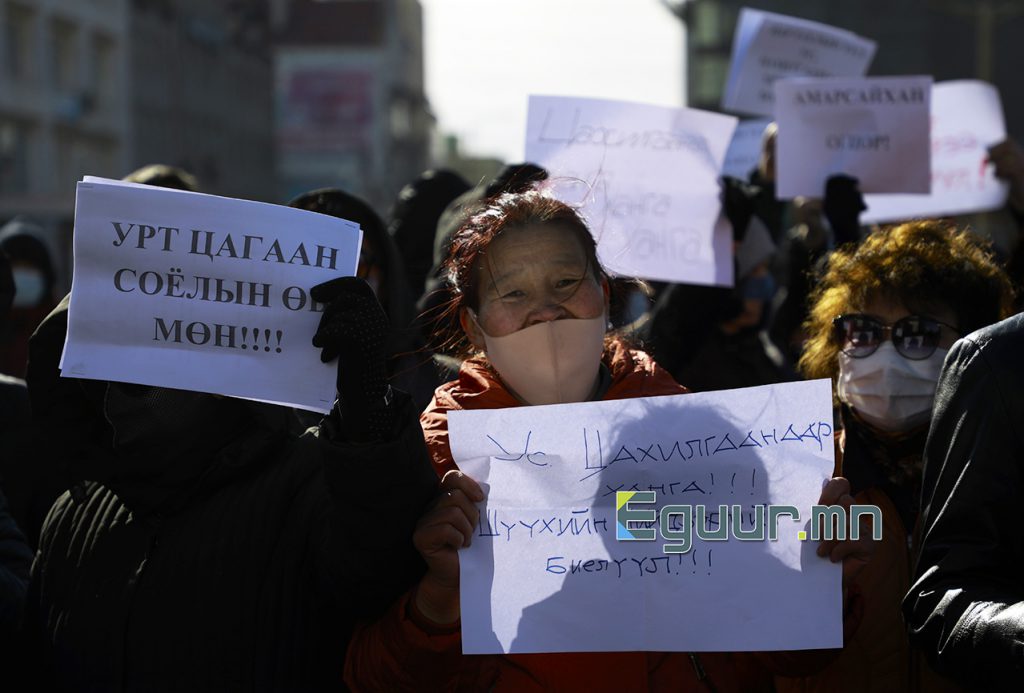 Тэд “Цар тахлын үеэр иргэдийн аюулгүй байдлыг алдагдуулж байна. Усаар ханга. Урт цагаан соёлын өв мөн” гэсэн бичиг бүхий уриалга барин, эсэргүүцлээ илэрхийлж байна.