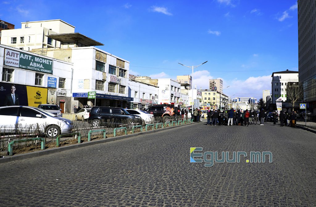 “Урт цагаан”-ыг нураах шийдвэр гарсантай холбогдуулан түрээслэгчид зам хаан жагслаа.