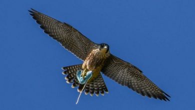 Хөлд нь амны хаалт орооцолдсон шонхор ан хийж чадахаа больжээ